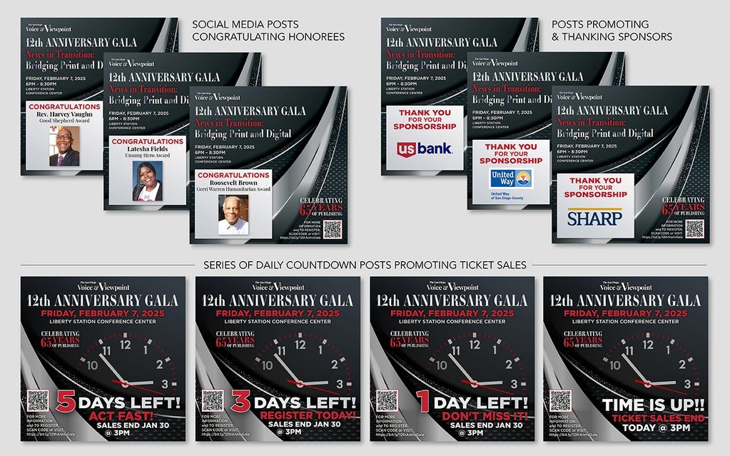 Soical Media Posts Promoting Honorees, Sponsors and Countdown to Event & Ticket Sales