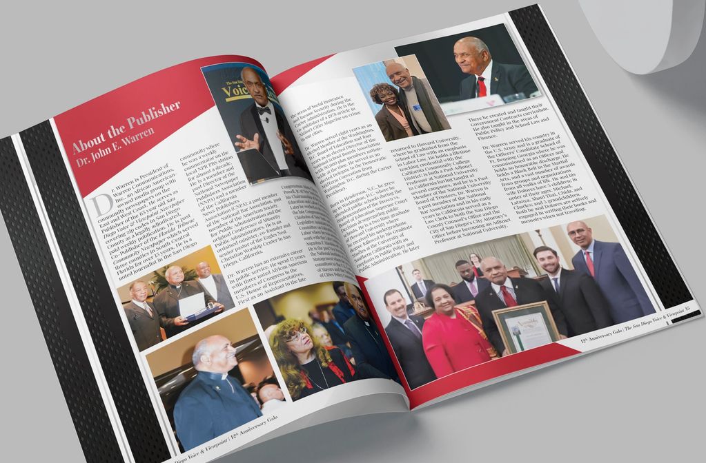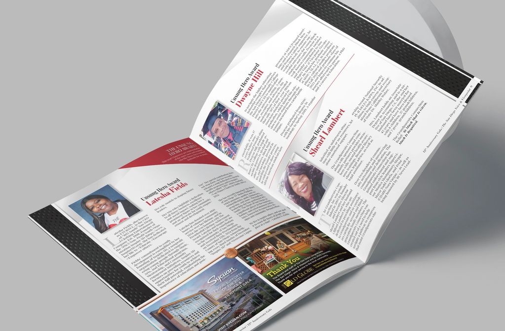 Program cover for Anniversary Gala event - Total of 20 pages, includes Event Schedule, Publisher and Editor letters, Honoree bios, History of Newspaper, Sponsor Ads, and more.